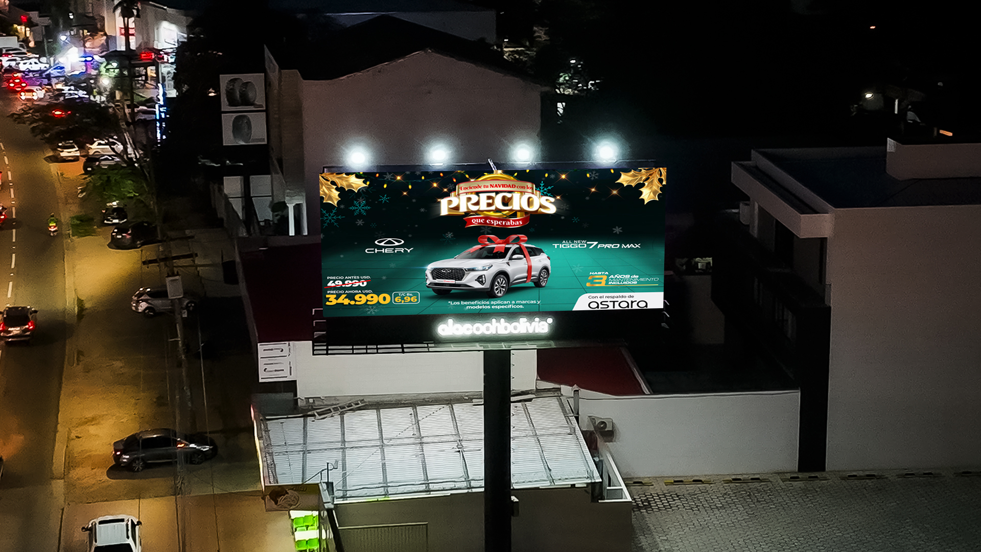 La publicidad exterior, también motiva acciones concretas. Un claro ejemplo es la campaña actualmente activa en nuestras pantallas para la marca de vehículos Chery, bajo el concepto “Enciende tu Navidad con los precios que esperabas y compra el auto que sueñas”.